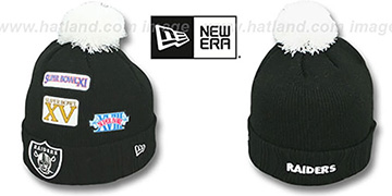 Raiders 'SUPER BOWL PATCHES' Black Knit Beanie Hat by New Era